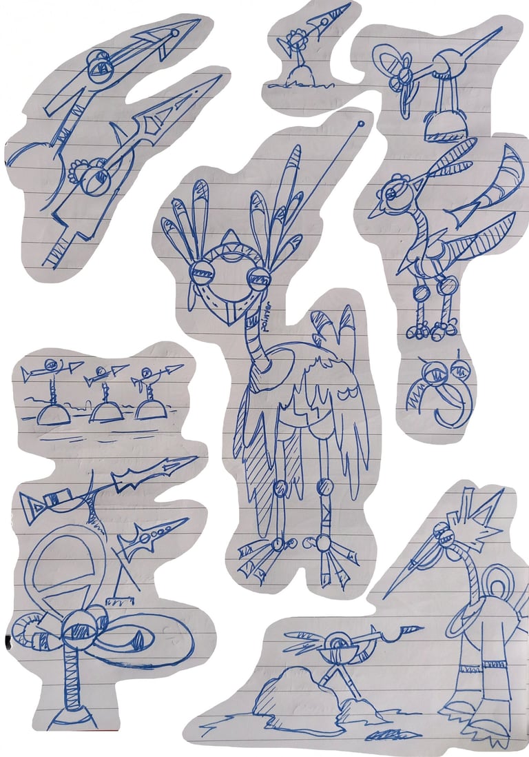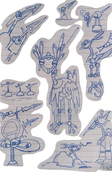 A collection of robots' character design, environment, and props